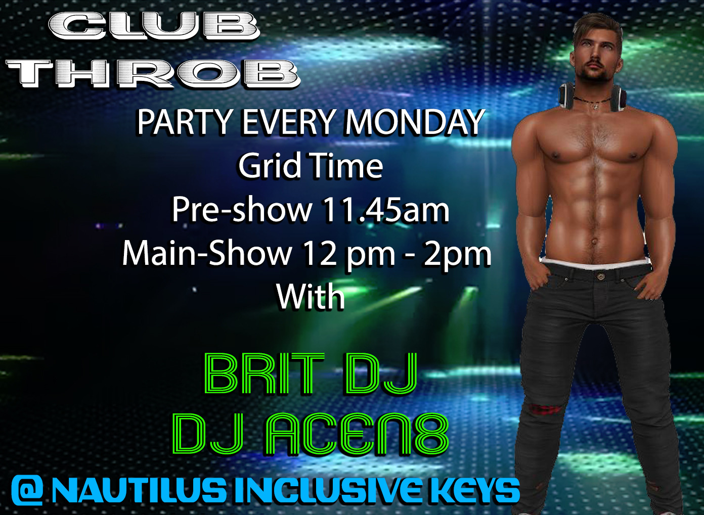 | Club Throb Party | Nautilus Inclusive Keys | Welcome to Club Throb Here At Nautilis Inclusive Keys With Your Host of the Party DJ Acen8 Get Ready to dance your Pixel off Pr-show is 11.45 Am Grid time Main Show Starts @ 12pm - 2pm All Are welcome Come As you are ;) | 2026-03-02 11:45:00 | ![]() | Click Here | Acen8 UK |